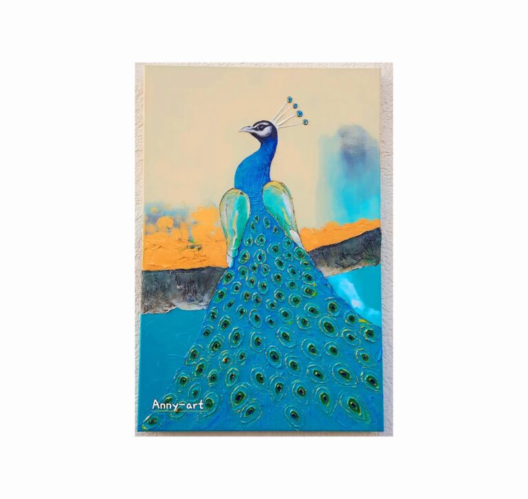 Pfau Acrylmalerei/Spachteltechnik 100cmx70cmx3,5cm